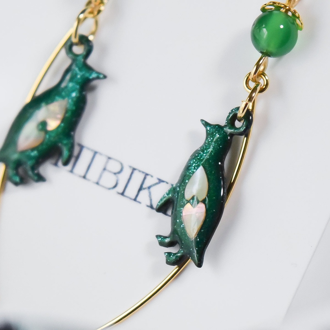 ペンギンの背中に花びら螺鈿をあしらった愛らしいピアスです。