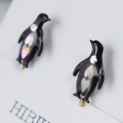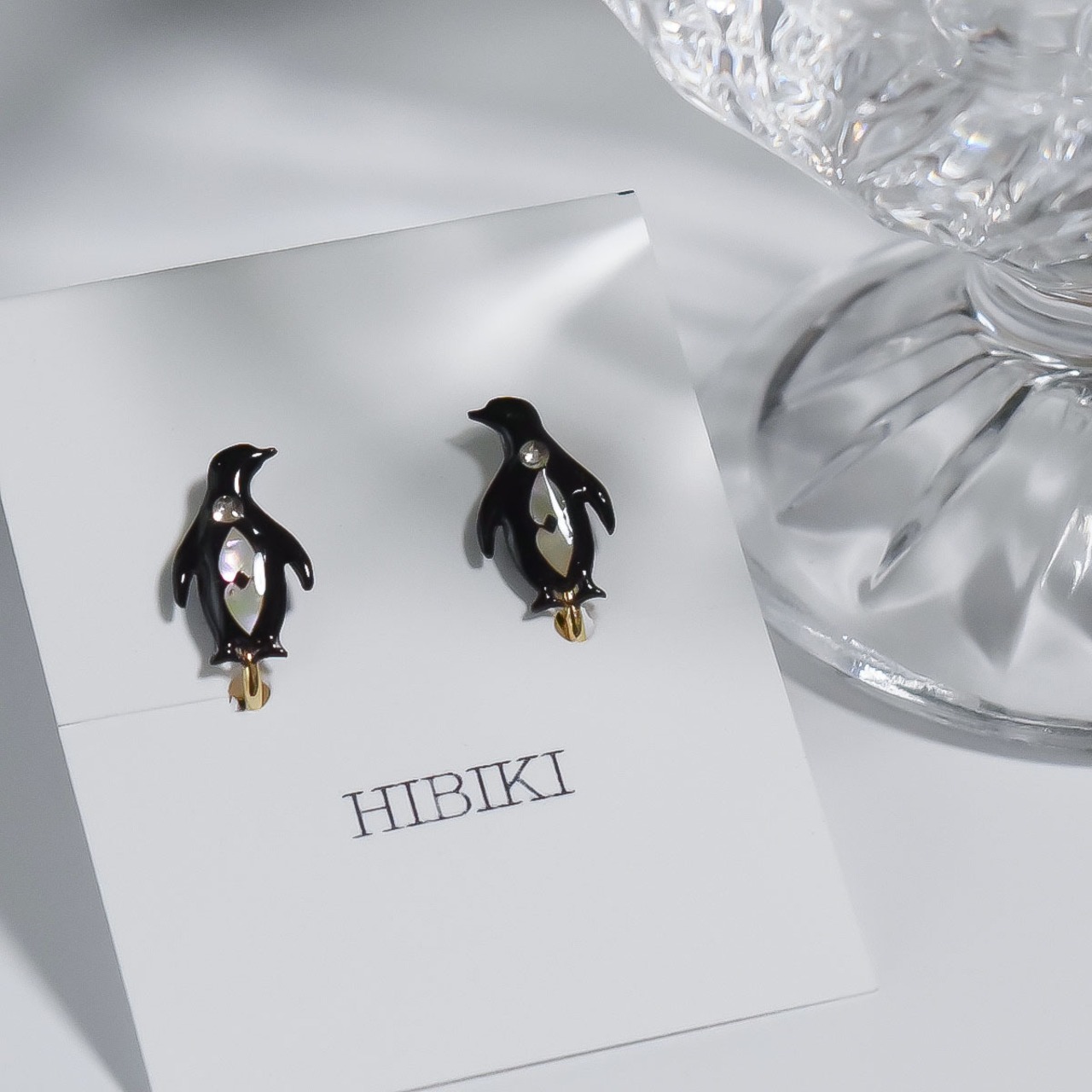 ペンギンに花びら螺鈿とラインストーンをあしらった愛らしいピアスです。